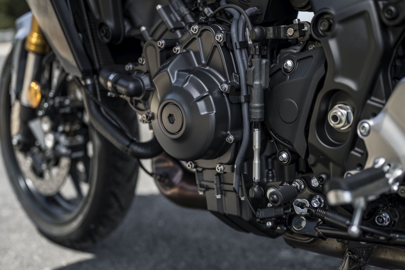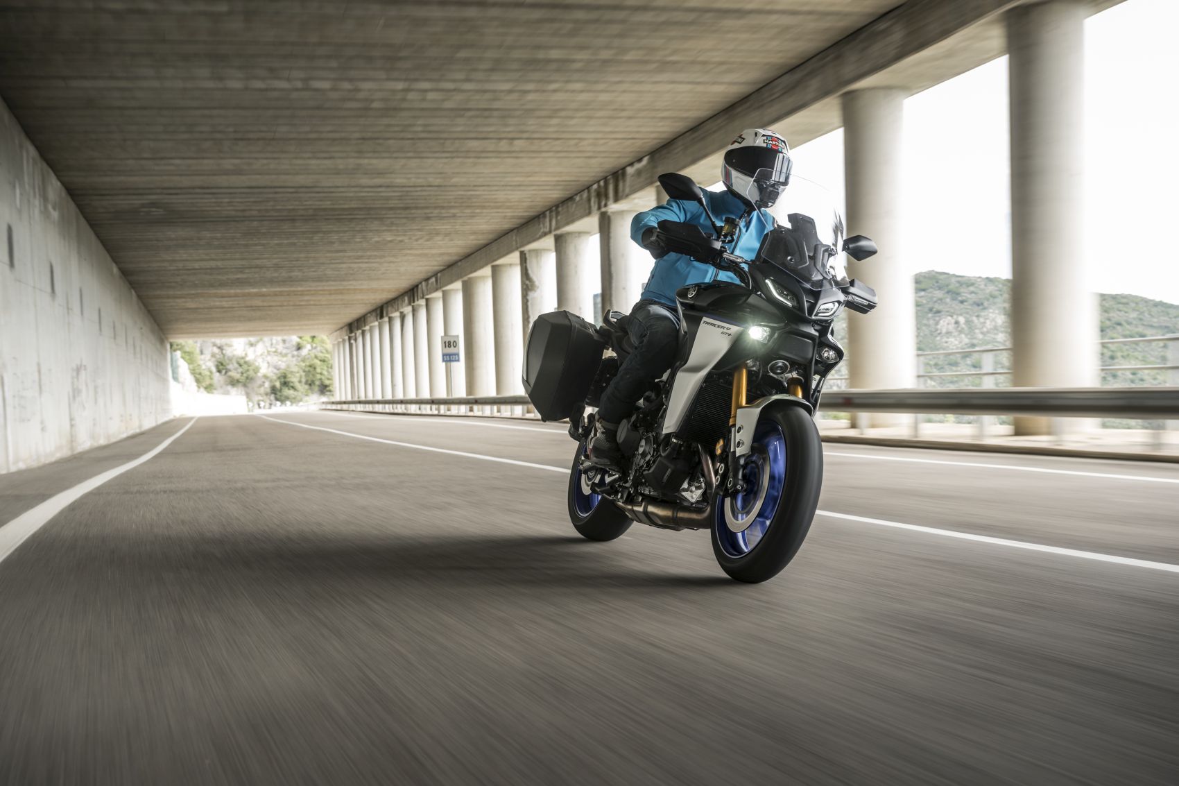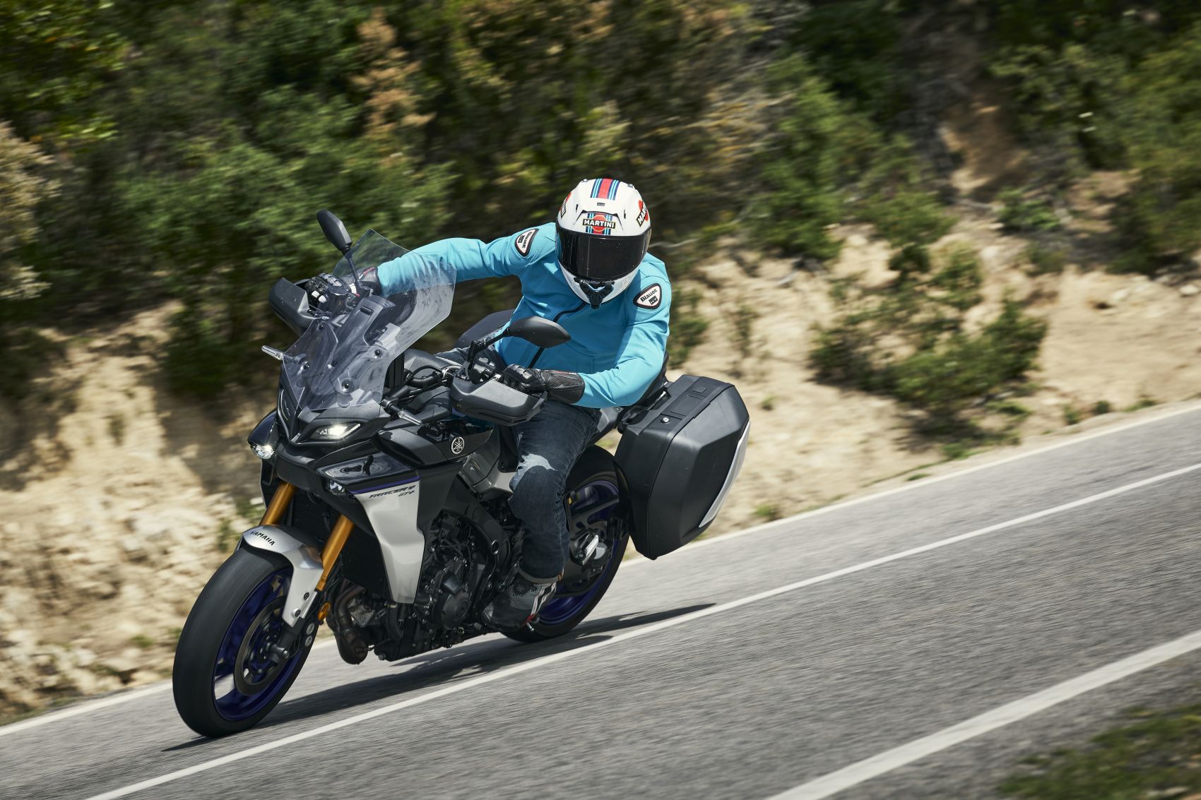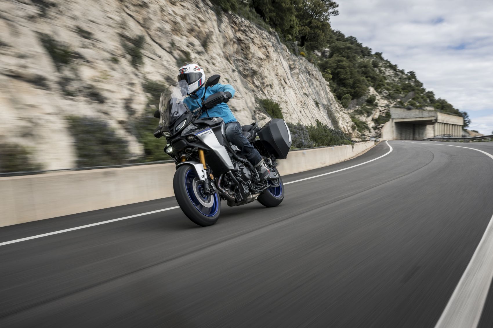 Nagy divat a fórumokban ócsárolni a vezetéssegédleteket, pláne, akinek nincsen pénze az elszálló árú új motorokra. Szerintem is megvan a hajdani analóg, bowdenes technika bája, de kipörgés-gátló vagy a blokkolásgátló nem csak életet ment. Az IMU vezérelt rendszerek egy csomó lehetőséget kínálnak az egyéb részegységek bekapcsolásával, mint az elektromosan állítható futómű vagy a radaros tempomat. A Yamaha Connected Roads-nak hívja ezt az egészen jól hangolt rendszert, melynek működéséből a felhasználó nagyrészt nem észlel semmit. Csak azt, hogy a GT+ az igencsak változatos szardíniai kanyardzsungelben már-már kényelmetlenül nagy tempóval is tud haladni. Angol felvezetőnk minden bizonnyal valamelyik helyi bajnokságban edződött, mert igencsak kapaszkodnunk kellett utána az egyébként sem lassú osztrák és görög kollégákkal. Ezt a szigetet egyszerűen motorozásra teremtették, és nem csak domborzat miatt. Az aszfalt versenypályás tapadása mellett a gyér forgalom és a csekély hatósági jelenlét miatt is a legjobb hely a kanyargásra. A 125-ös út Dorgali és Osulei közötti ötven kilométeres szakasza pedig talán az egésznek az esszenciája. A 119 lovas sorhármas továbbra is komoly intenzitással tol ki a szűk kanyarokból is, a hibátlan gyorsváltóval élmény minden kigyorsítás. Pláne, hogy hagytak némi hangot is neki. Combos 93 newtonméteres nyomatékát hétezren adja le, így némileg magasabb tartományban szeret üzemelni, mint kéthengeres konkurensek. Ami egyáltalán nem baj, hiszen ez jól érzi magát a leszabályzás közelében is.