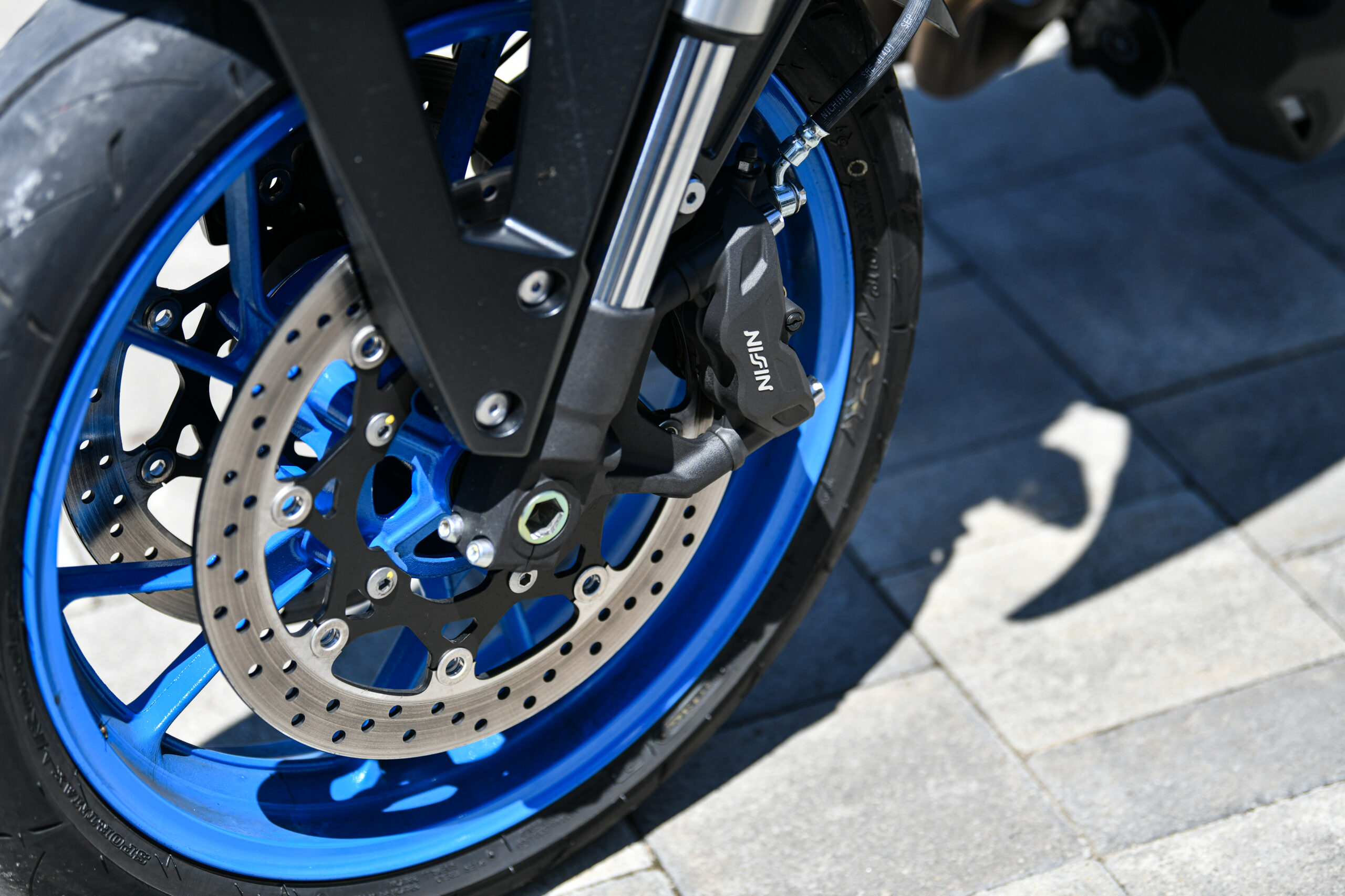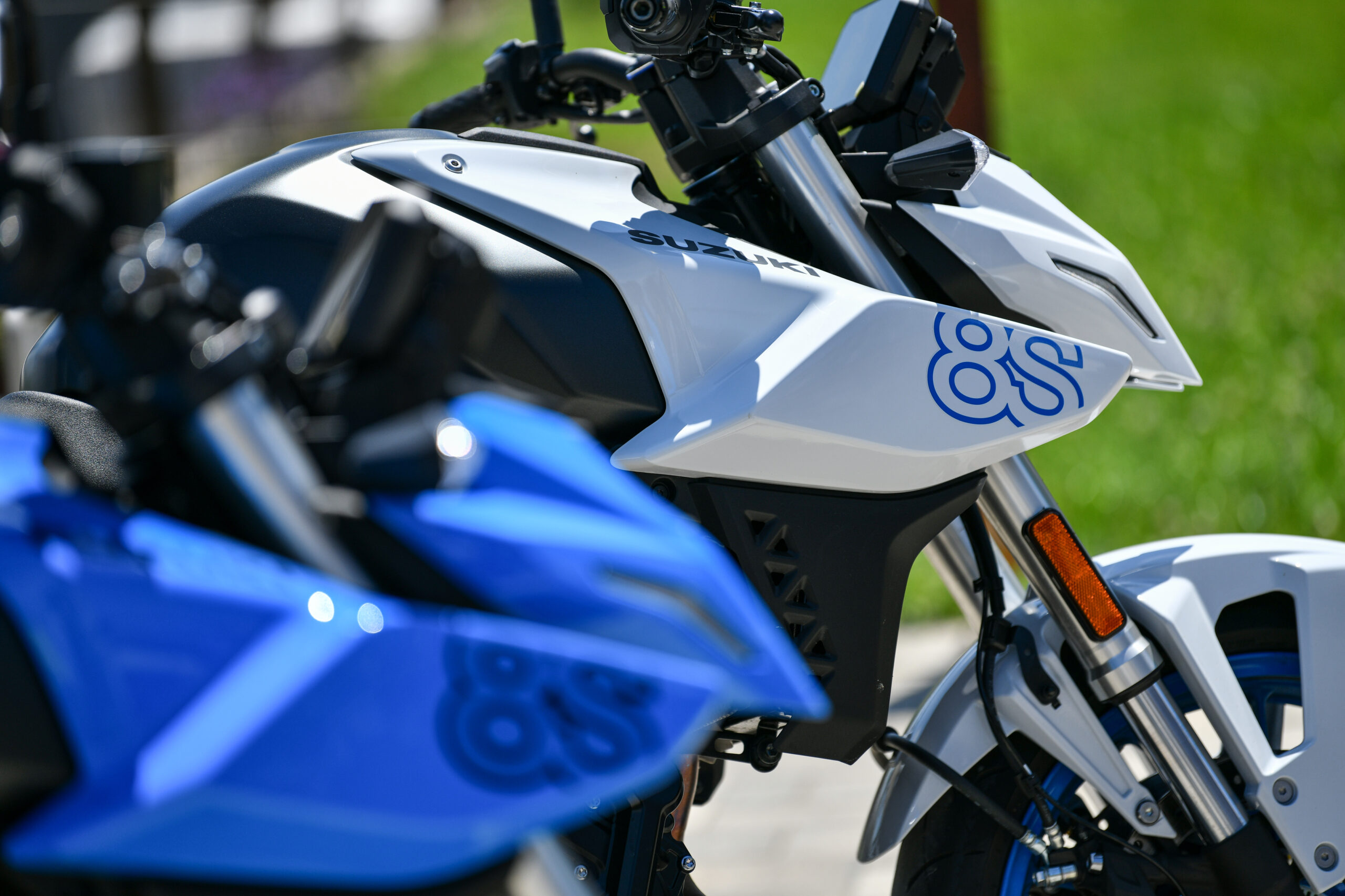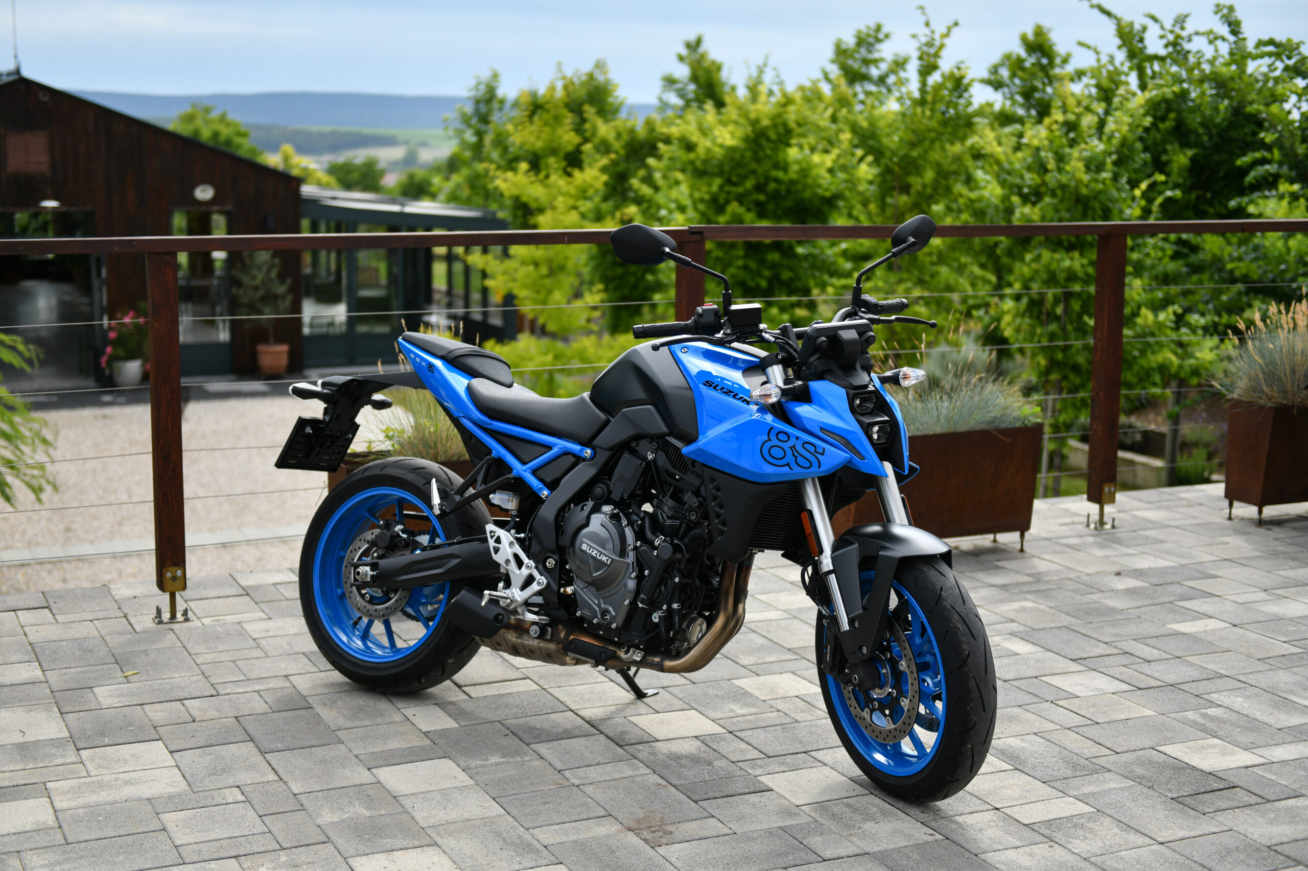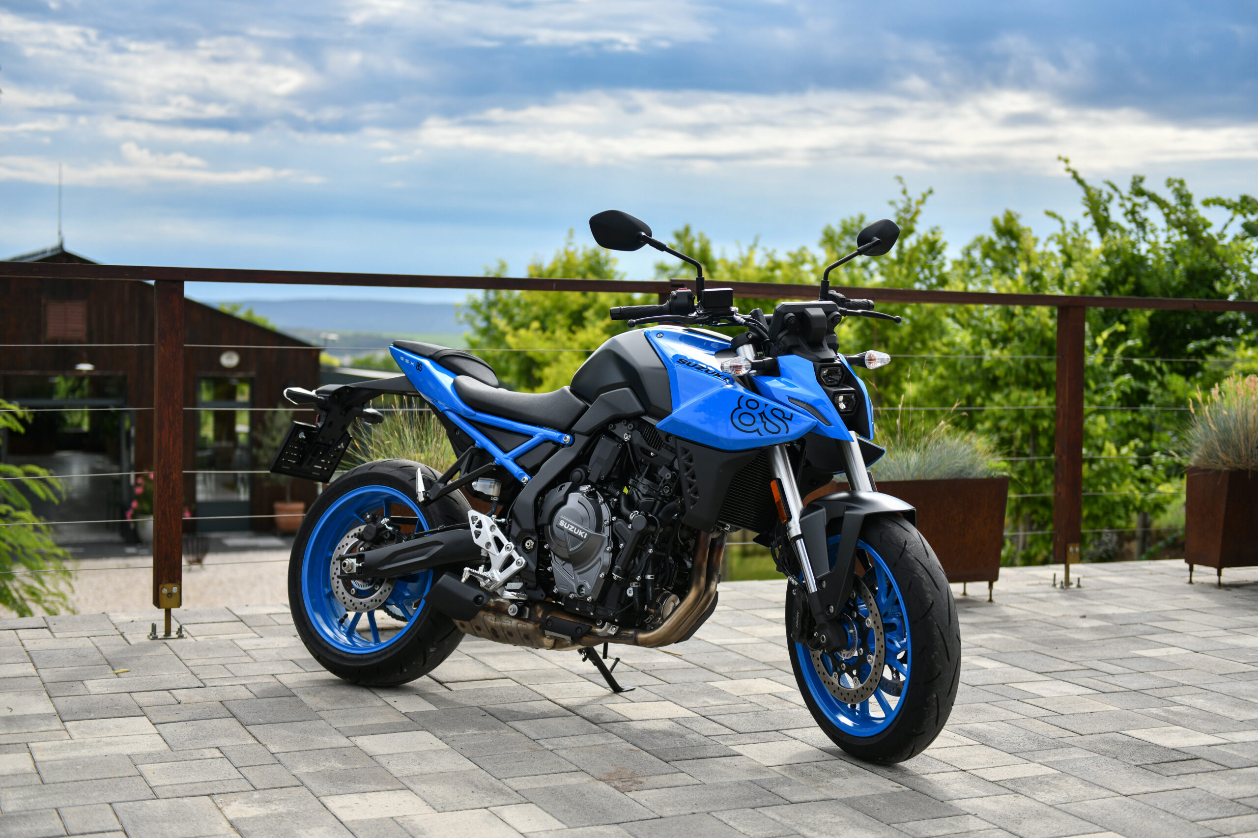 A GSX8 S formáját tekintve egy ízig vérig modern naked bike. Sok formai újdonságot persze ne várjunk egy idomokkal éppen csak megszórt motortól, pláne az árérzékeny középkategóriában. Ahol az évek óta egyeduralkodó Yamaha MT07-es éppen letaszítja a trónról a jóval erősebb és modernebb, mégis olcsóbb 750-es Honda Hornet. Vagy említhetném még a már kínai gyártású KTM Duke 790-et is, melynek sziluettje meglehetősen hasonlít a Suzukira. Viszont a hegyes fejidom az egymás fölé pozícionált fényszórókkal és a bajusz-szerűen elhelyezett menetfényekkel mégis egyedivé teszi, és térhálóra hajazó segédváz is igencsak tetszetős. A hátsó lámpát száműzték a rendszámtartóra, de farokidom végén lévő kupak azt az érzetet kelti bennem, hogy utólag gondolták meg magukat a tervezők. Illetve arra is nagyon kíváncsi lennék, miért akasztanak egy motorra még 2023-ban villanykörtés indexeket. További magánvélemény, hogy a teli kék és a fehér verzió is telitalálat. Kifejezetten kedvelem ezt a kék árnyalatot, de természetesen a biztonsági játékosoknak van egy teli fekete fényezés is. A hardware szemre is egészen ígéretes: radiális féknyergek és fordított teleszkóp elöl, masszívnak tűnő acél lengővilla 180-as hátsó gumival hátul. A rugózó elemek csillapítása sajnos nem állítható, csupán a hátsó rugó-előfeszítés.