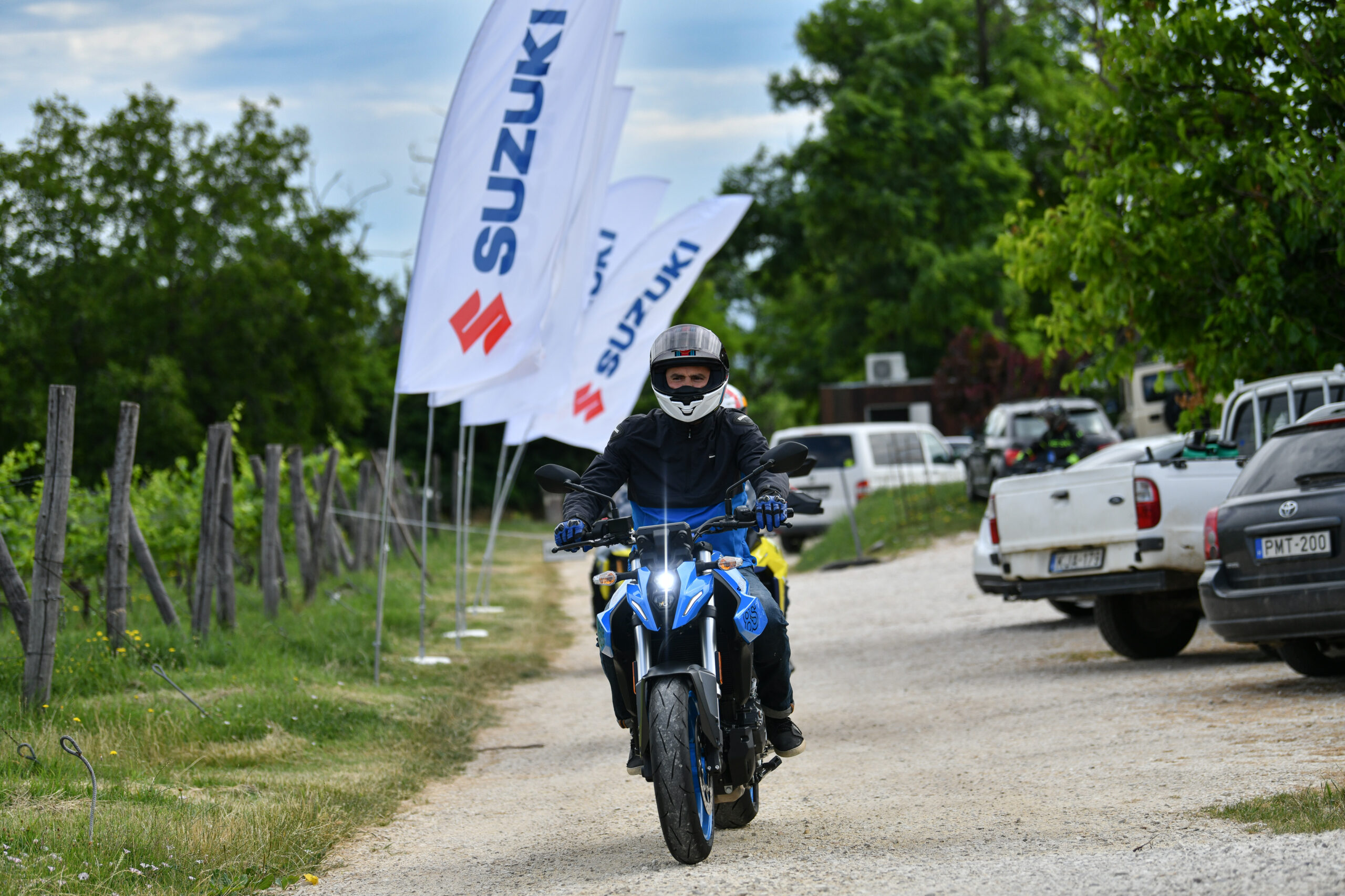 Ezúttal viszont nem mentem terepen, az országúton viszont kifejezetten kellemes utazómotor benyomását kelti a nem-V-strom. Futóművet tekintve ugyanis jóval komolyabb az említett japán gépeknél. A Showa gátlók minden paraméterükben állíthatóak, egészen biztosan bírják a komolyabb ugratókat is. Habár ezeket a tartalékokat a felhasználók kilencven százaléka soha nem fogja kihasználni, a magasabb minőségű futómű közúton is jobban teljesít. Finoman reagál az úthibákra, és erőltetett menetben sem kelti a közepes túra-endurókon általánosnak mondható lebegő érzést. Fordulékonysága nem kiemelkedő, egy mérettel nagyobb motor benyomását kelti. Fék tekintetében sajnos nem lőtték túl a kategóriát, itt is csenevész úszónyergek teljesítenek szolgálatot. Nem mintha nem állítanák meg a motort, de két személlyel három dobozzal hegyről lefelé biztosan meg lehet izzasztani őket.  A GSX8 három menetmódja mellett találunk egy Gravel módot, ami laza terepen enged némi csúszást a hátsó keréknek. Természetesen ilyenkor az ABS is deaktiválódik a hátsó keréken. Az „A”mód tökéletes közútra, a némileg puhább gázreakcójű „B”módnak nem látom túl sok értelmét, esetleg az esőre ajánlott „C”-nek. Sajnos a tempomatot itt is kispórolták, úgy tűnik az mindegyik japán márkánál nagyobb modellek privilégiuma marad még egy ideig.