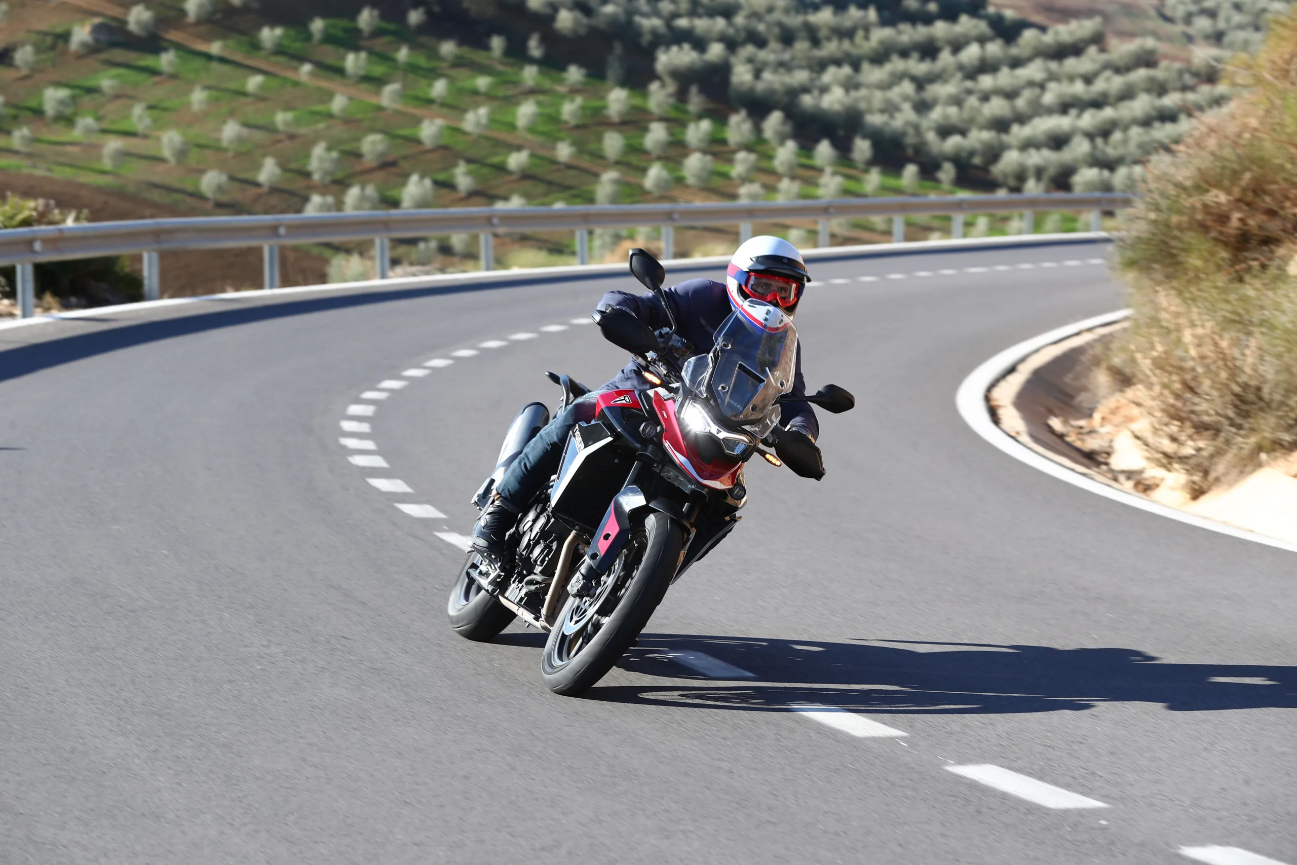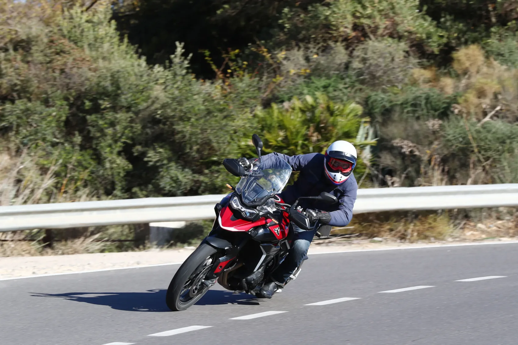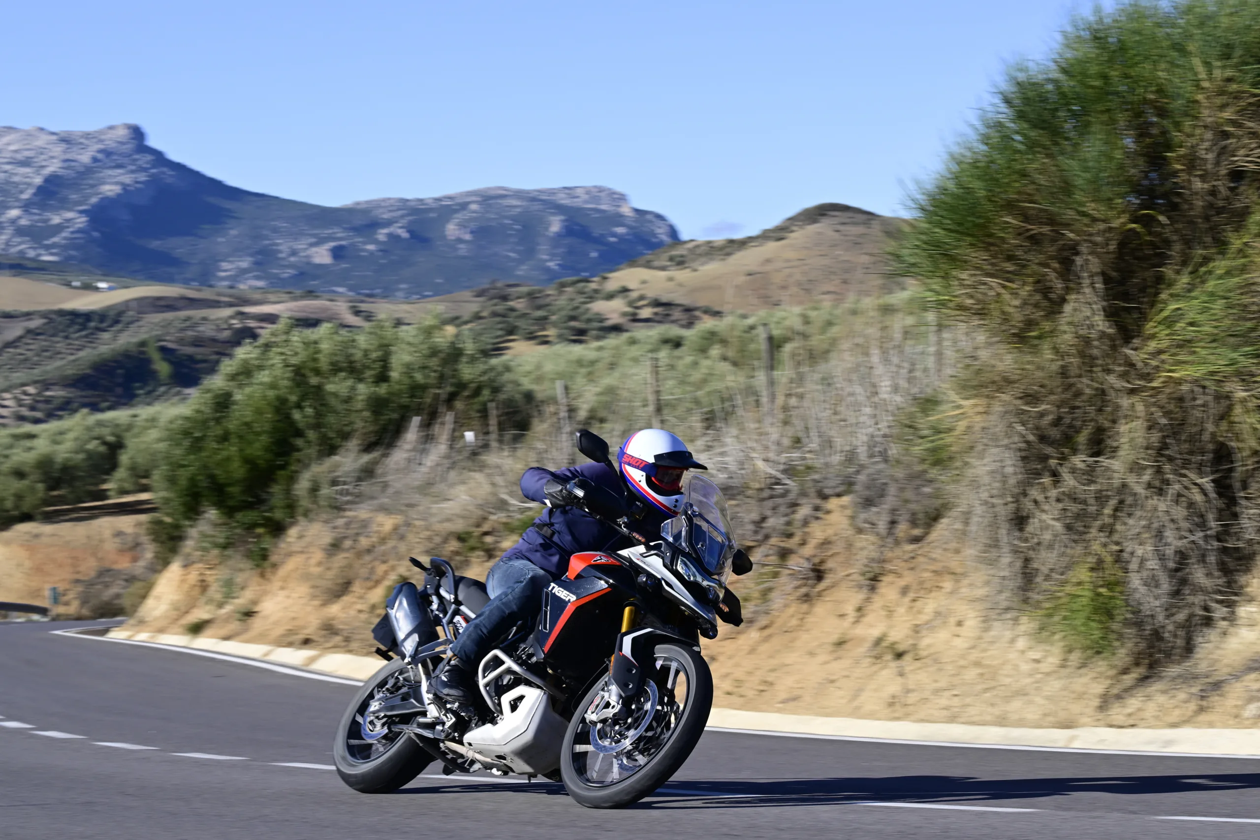 Hiszen, ha sokat motorozol, előbb-utóbb igényed lesz a kényelemre, és a magas építés miatt az útminőséget is figyelmen kívül hagyhatod az útvonal-tervezéskor. Szóval, ha nem vagy különösebben mély növésű, egy modern bokorugró az maga a szabadság. Ingázhatsz velük melóba hűvös reggeleken, de a Balkán burkolatot csak nyomokban útjait is felfedezheted. A 2020 óta piacon lévő Tiger 900-al lenyomtam a megjelenés évében egy klasszik horvát nyolcas utat, és fél évvel a mostani teszt előtt ugyanitt motoroztunk Malaga környékén a barátaimmal a frissítés előtti modellekkel. Mivel mindkét túrán volt a csapatban erősebb motor, némileg több tűzerő igencsak jól jött volna, hogy ne kelljen folyton kifacsarni a 95 lóerős háromhengerest. Ami mellesleg az egyik legjobb karakterű blokk, amit manapság motorkerékpárba építenek. A normál triplákhoz képest (pl. Street Triple) a fő különbség, hogy a 900-as és az 1200-as Tigerek főtengelyén a hajtókarok T-alakban vannak elrendezve. Ez egyenetlen gyújtássorrendet eredményez, amitől leginkább egy V4-eshez hasonlít a hangja.