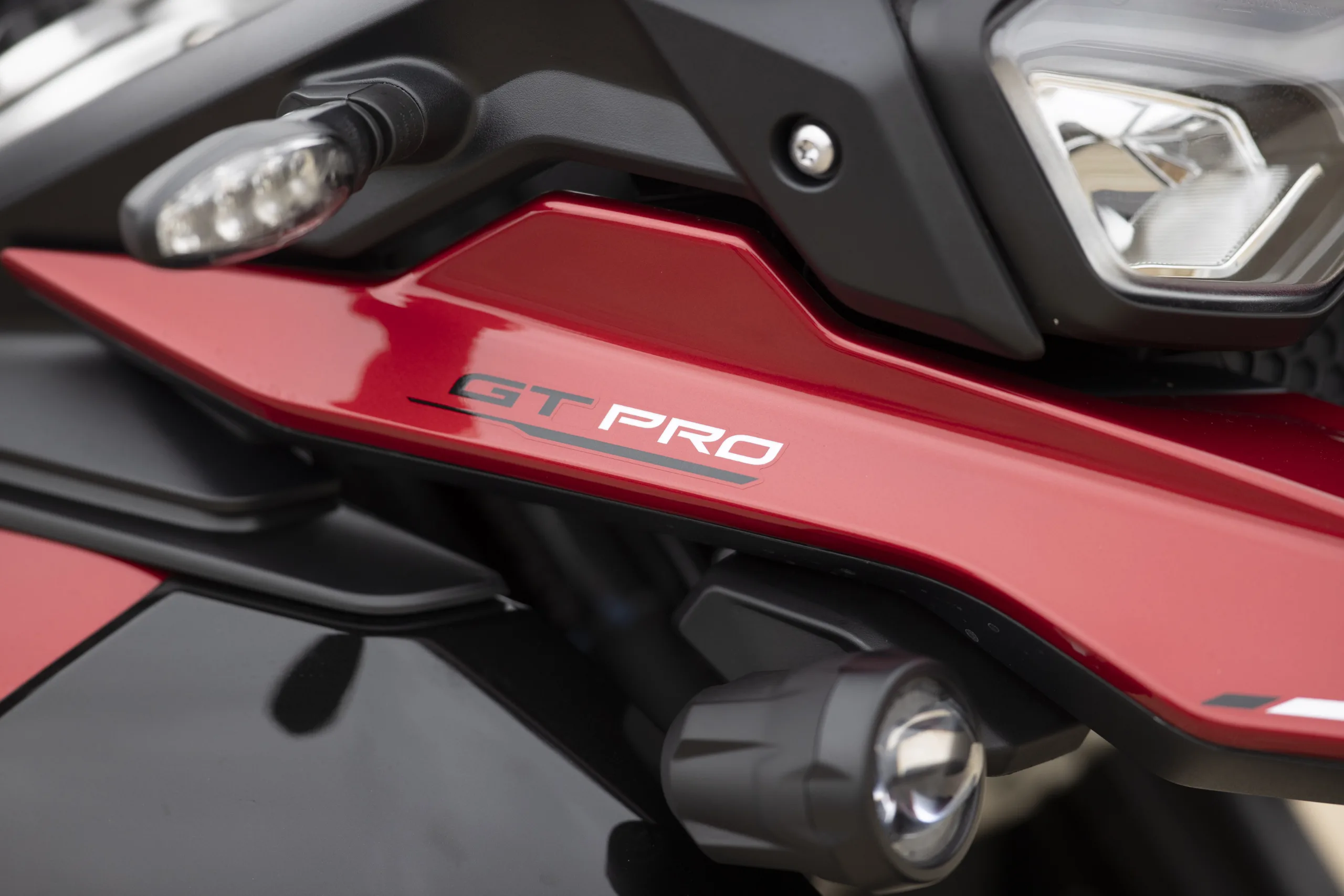 Jóval kisebbnek gépnek tűnik a hegyesebb futómű-geometriával rendelkező és elektromos hátsó gátlóval ellátott GT Pro. (Fotó: Triumph)