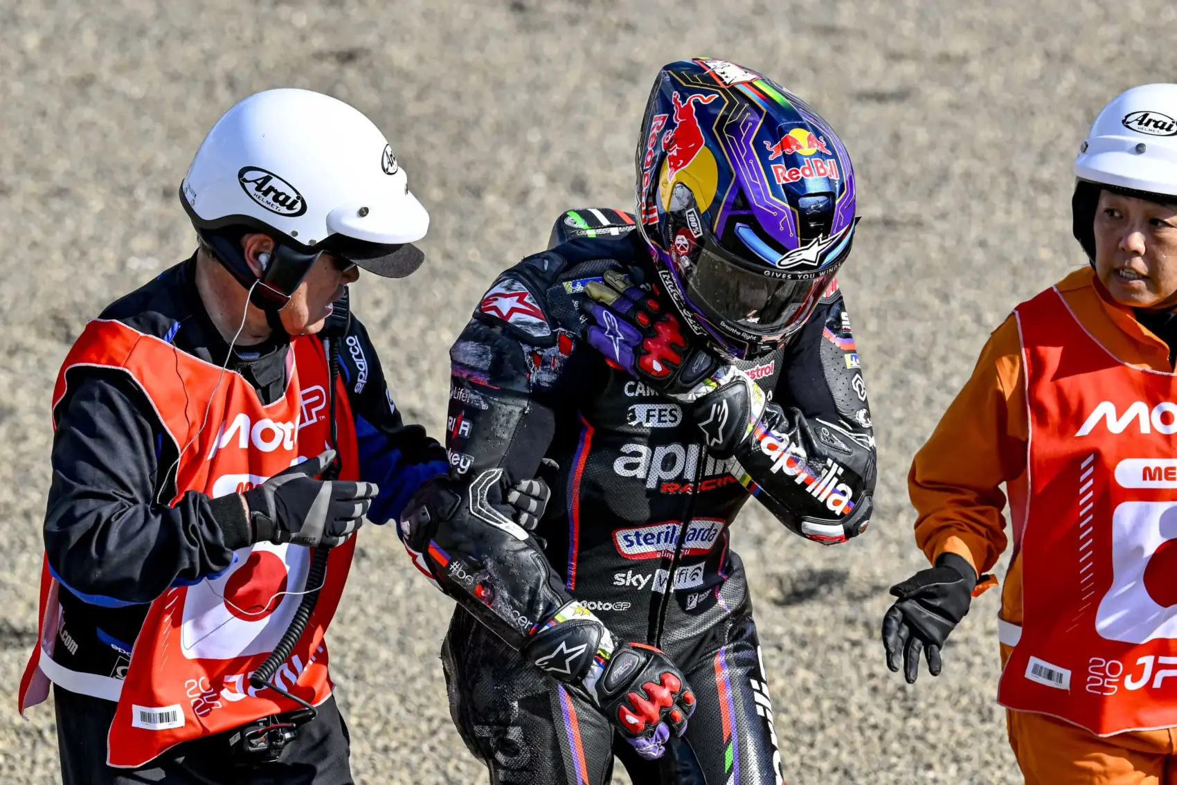 Jorge Martín számára a Japán Nagydíj hétvégéjén újabb negatív fordulatot vett az egyébként is rémálomszerűen alakuló éve. Az akkor még címvédőként versenyző pilóta a motegi sprinten összeért Fermín Aldeguerrel, majd motorja pont csapattársának, Marco Bezzecchinek vágódott neki az első kanyarban, így mindketten elestek.