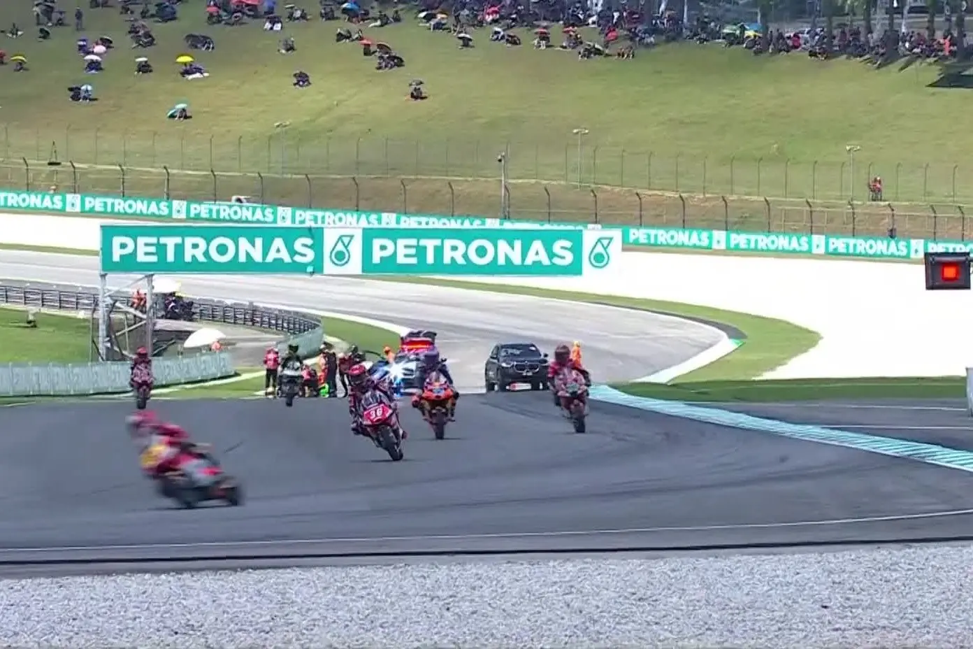 Még mielőtt elrajtolt volna a Maláj Nagydíj vasárnapjának első futama, óriási baleset történt. A Moto3-as viadal előtt ugyanis José Antonio Rueda nagy tempóval nekiment a lassan haladó Noah Dettwiler motorjának, aminek következtében mindketten megsérültek. Előbbi kéztörést szenvedett, utóbbinak viszont sajtóértesülések szerint az élete is komoly veszélyben volt, de most már stabil az állapota.