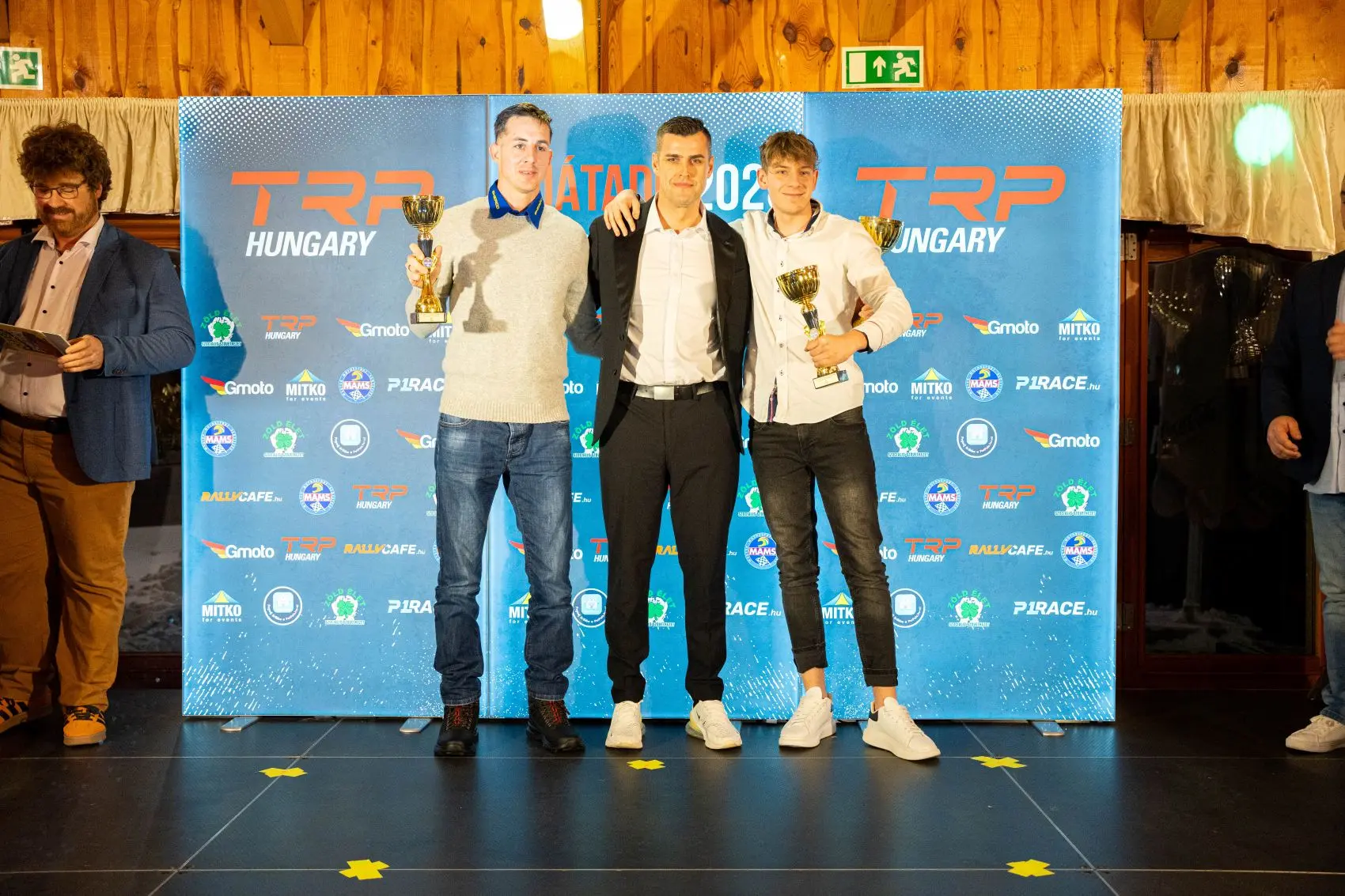Az este során természetesen a szponzorokra is gondoltak. A program elején minden támogatót köszöntöttek, többek között a TRP Hungary, valamint a TRP Media egyes oldalai, a P1race.hu és a RallyCafe Magazin is helyet kapott. Előbbi cég kapcsán emlékeztettek arra, hogy a 2025-ös évben névadóként szerepeltek, valamint azt is megemlítették, hogy a Superenduro-világbajnokság magyarországi fordulójáért is ők felelősek. Ezenfelül köszönik a többéves együttműködést. A P1race.hu-t illetően e sorok íróját emelték ki, aki „hóban, fagyban, melegben és leégve is tudósított, és írta a cikkeket”. A RallyCafe Magazin kapcsán pedig az állandó endurós rovatot hangsúlyozták. A cégcsoport kapcsán sem telt el eseménytelenül az este, ugyanis a TRP Hungary és a P1race.hu képviselőjét is felhívták a színpadra, és egy különdíjat vehettek volna át, ám az ünnepségre betegség miatt nem mindenki tudott elutazni.