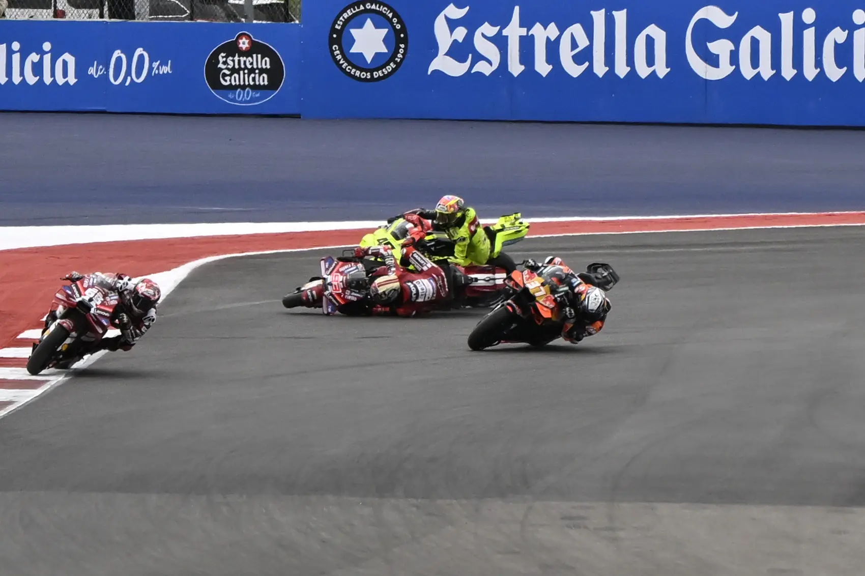 Több szempontból is drámaian alakult a MotoGP austini sprintfutama, amelynek az egyik legemlékezetesebb momentuma Marc Márquez és Fabio Di Giannantonio ütközése volt. Az olasz pilóta megelőzte a címvédőt, aki megpróbálta visszaelőzni márkatársát a hátsó egyenes végén. Ugyan már maga a manőver sem sikerült tökéletesen, de az igazi problémát az jelentette, hogy Márquez elesett és magával vitte Di Giannantoniót is. A hibáját később elismerő gyári Ducati-pilóta ezért hosszú körös büntetést kapott a főfutamra. Ám Márquez ennyivel nem tudta le az ügyet, hanem személyesen kért bocsánatot Di Giannantoniótól.